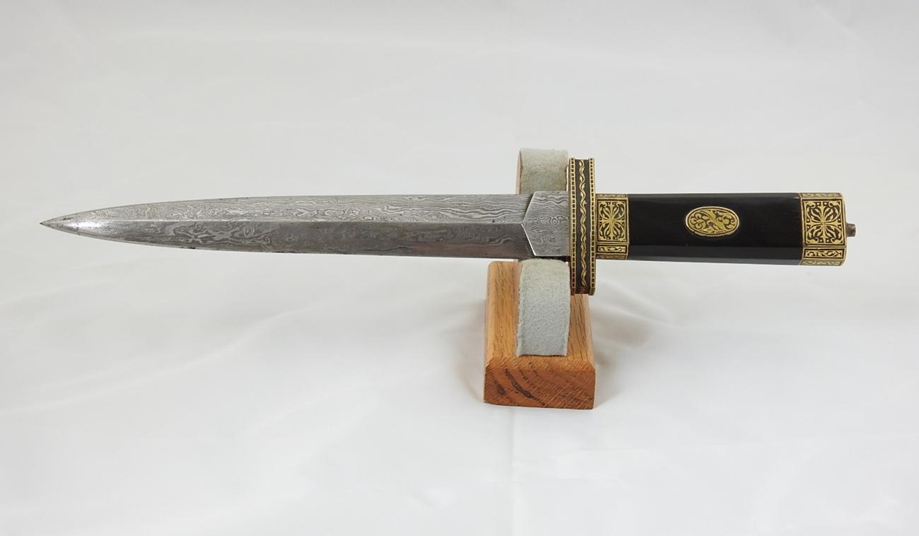23 Oct 2024 Old Damascus Blade Dagger With Engraved Gold And Black Enamel Fittings by Staff | | 0 Old Damascus Blade Dagger With Engraved Gold And Black Enamel Fittings
