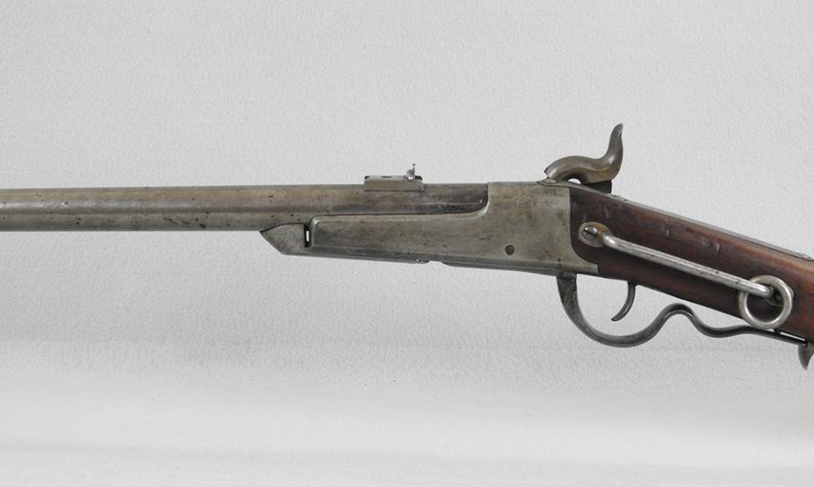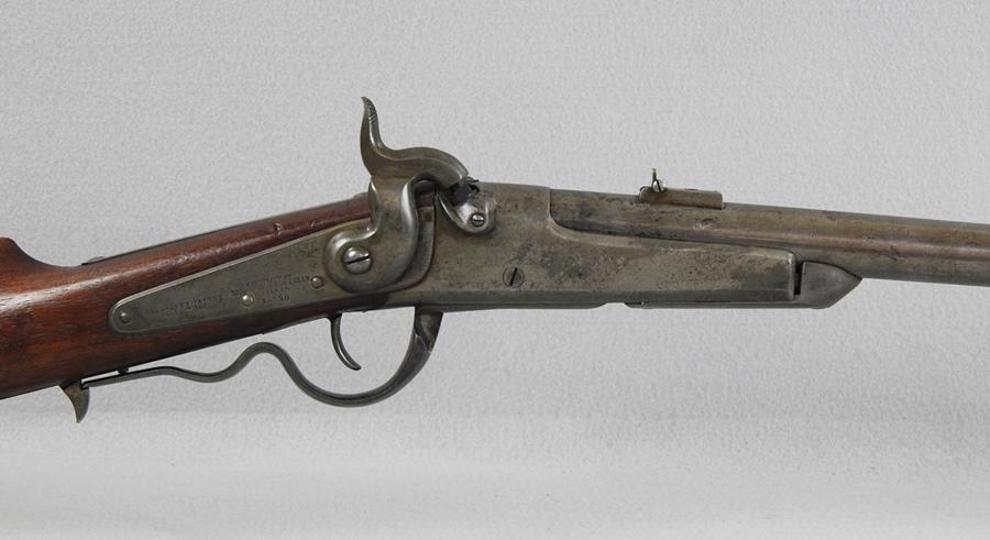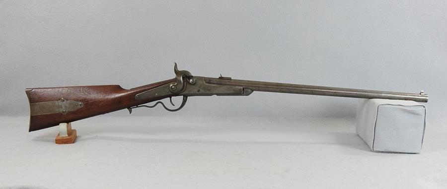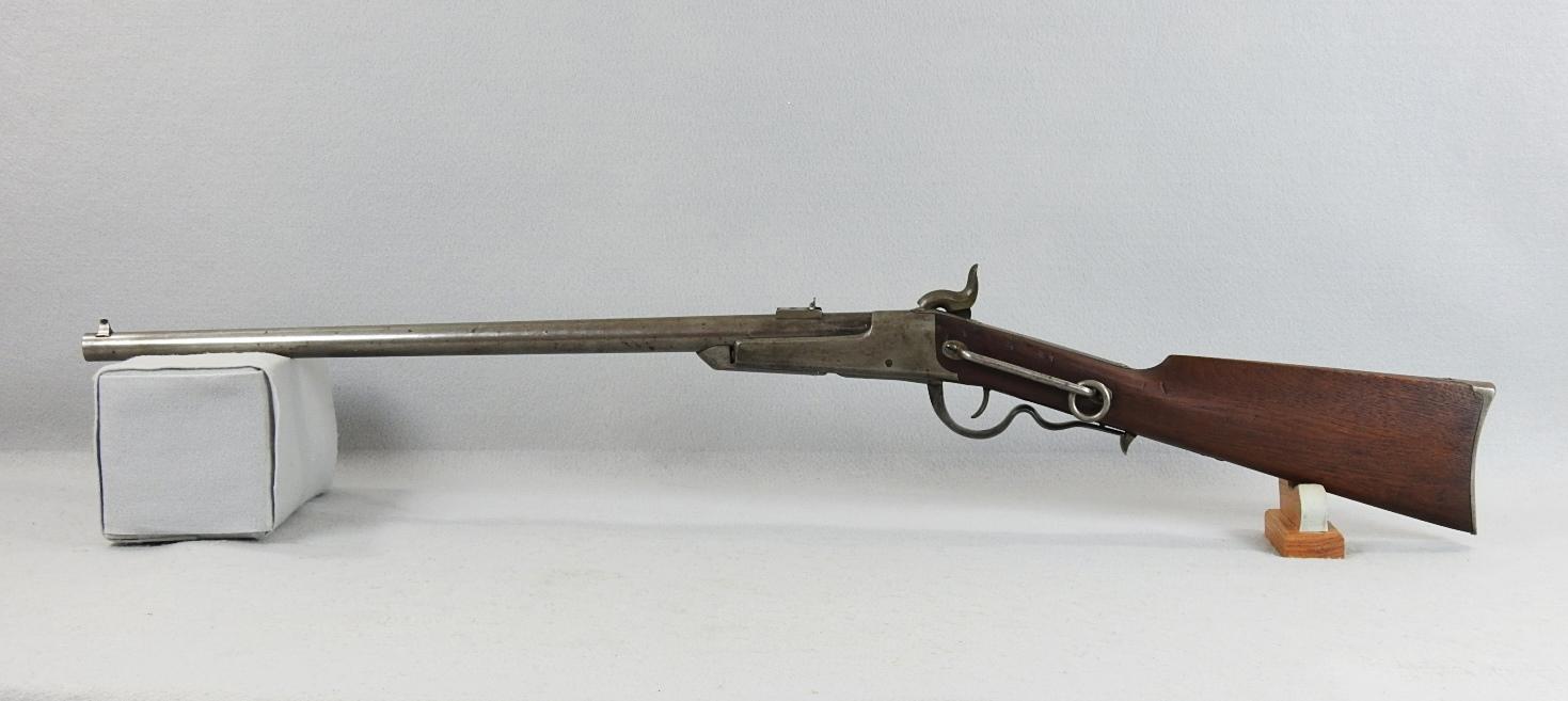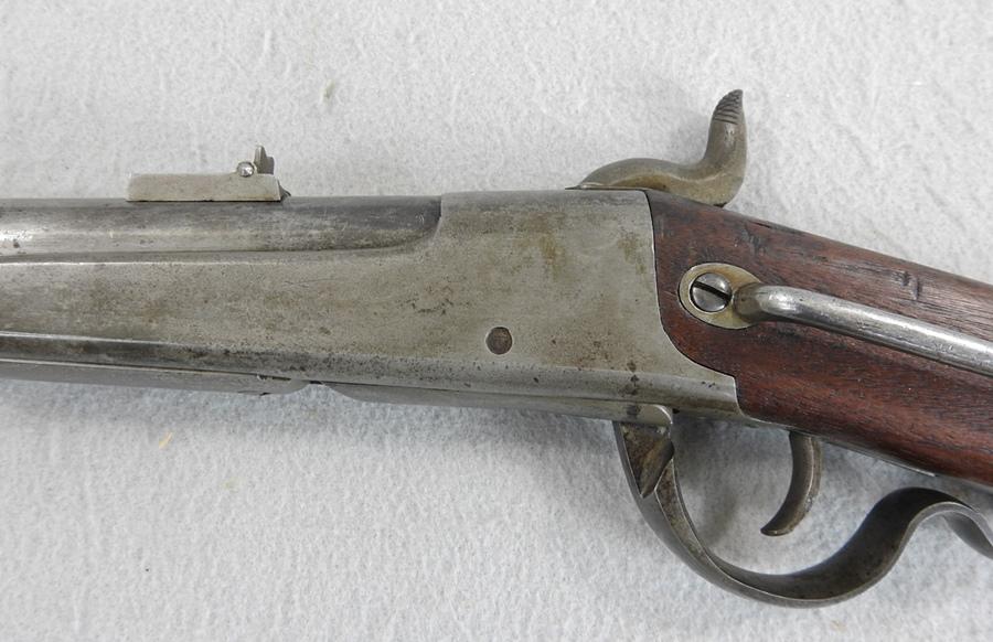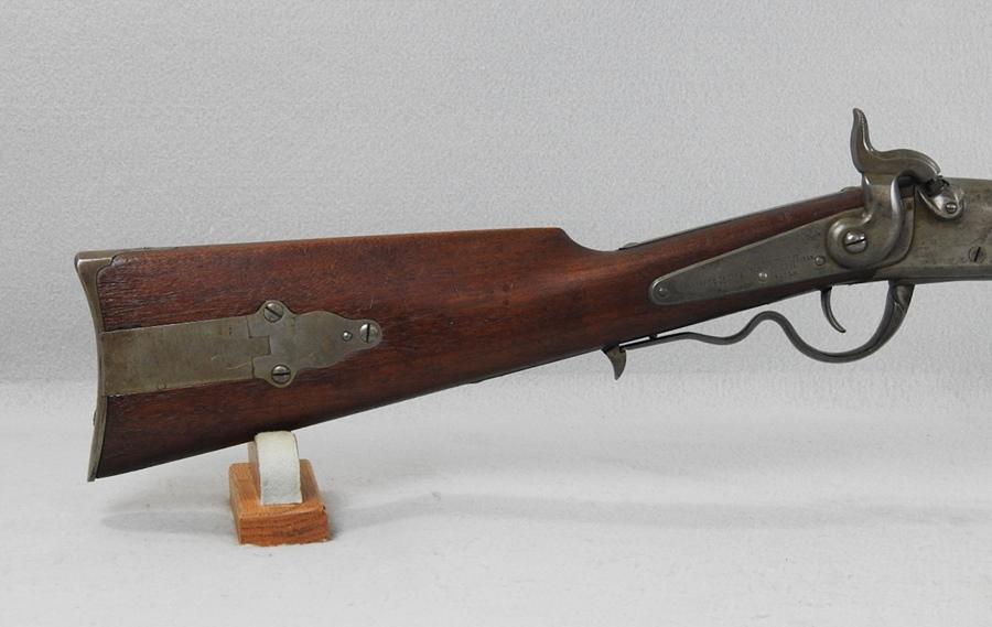 This was made for Gallager by Richardson & Overman. They were issued to the 2nd, 3rd, 4th and 6th Ohio, the 13th Tennessee and 3rd West Virginia. The iron butt compartment still has the original nipple in it. The mechanical function is very good, crisp and tight. The bore is very good bright and shiny with only the smallest amount of corrosion. This is a 50 caliber percussion with a 22 ¼” barrel and the S.N. 14250. The lock plate still shows some case colors and the front of the receiver has only small traces of case colors.