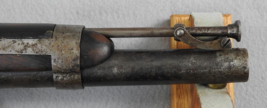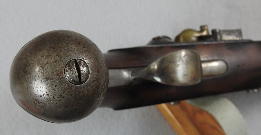 This is a Model 1836 Johnson flintlock pistol with an 1842 lock date made by Robert Johnson of Middletown, Connecticut. It has been cleaned with some pitting remaining. The wood stock was sanded but still has a partial cartouche on the left side. It has had a few replaced screws and the 54 caliber smooth bore has some pitting. This looks to be original flintlock and not a reconversion. The mechanical function is very good. With proper loads it should be fine to shoot. The Model 1836 pistol was the primary handgun issued by the U.S. Army during the Mexican War and on into the Civil War.