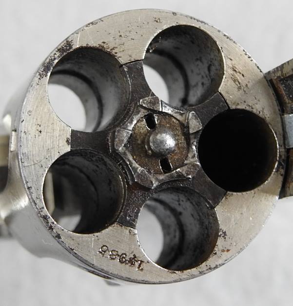 This S&W 1 ½ 32 S.A. 3” with the strain screw and SN 17985. It retains 80% original nickel finish with crisp mechanical function. The grips are very fine plus no chips or cracks. All of the markings are sharp and crisp. The bore is very good with traces of corrosion from the black powder priming.
