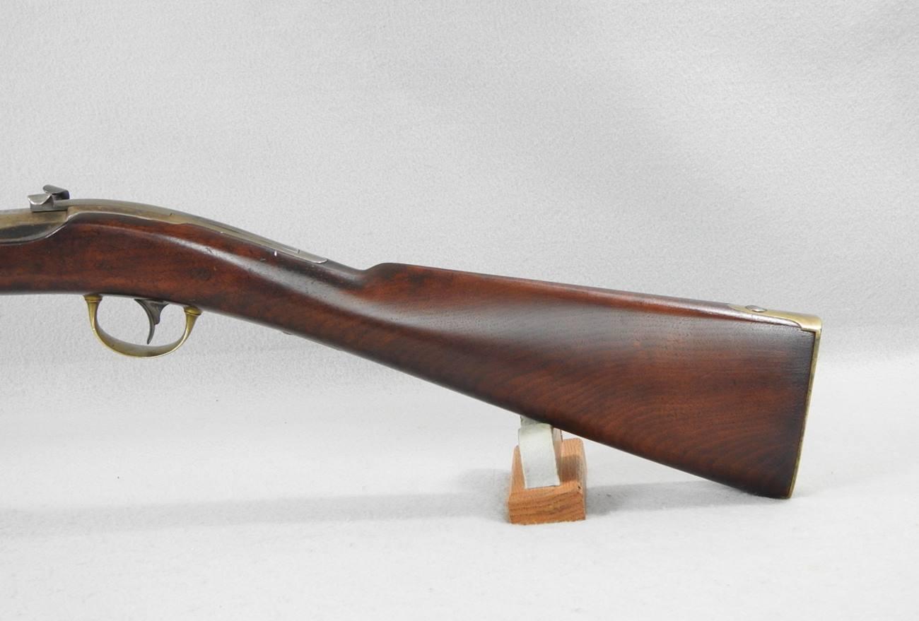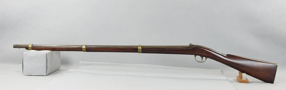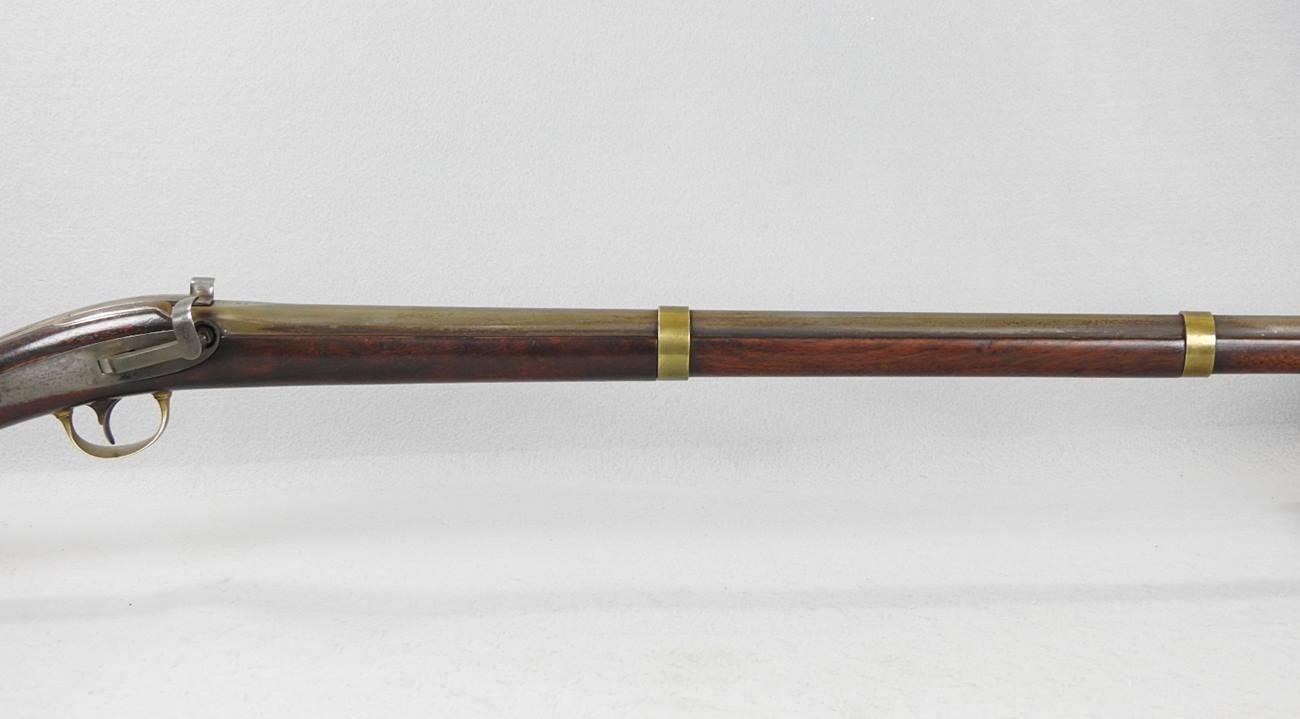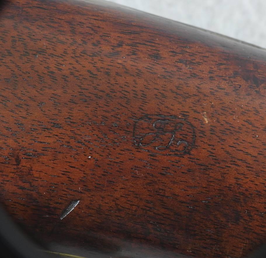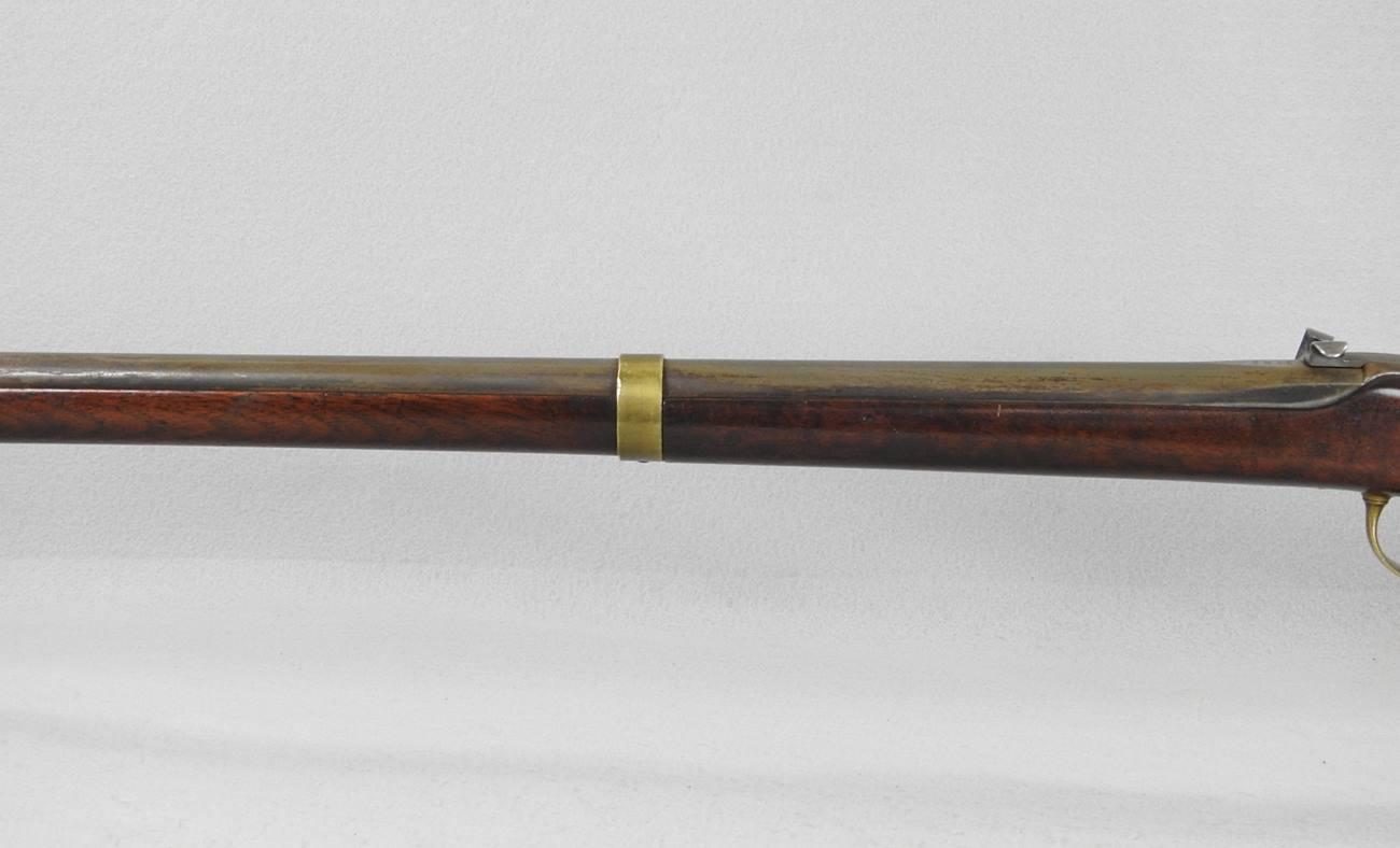 The barrel retains over 50% brown and still has nice traces of case colors. The breech is marked Wm Jenks USN over RP over P over 1844. There are two stock Cartouches JP and JL. The butt plate two is stamped P, the bottom of the trigger guard has P and behind the trigger guard on the flat grip is stamped P. The loading lever is numbered #415. There are two stock Cartouches JP is John Pope and RP for Richard Paine or Richard Parker. The mechanical function is very good crisp and tight and the smooth bore is good to very good with only a small amount of corrosion.