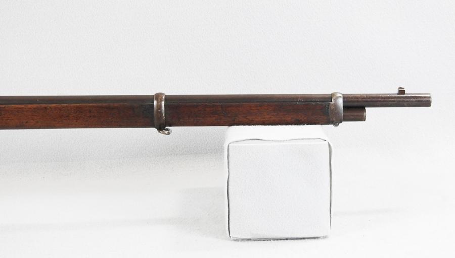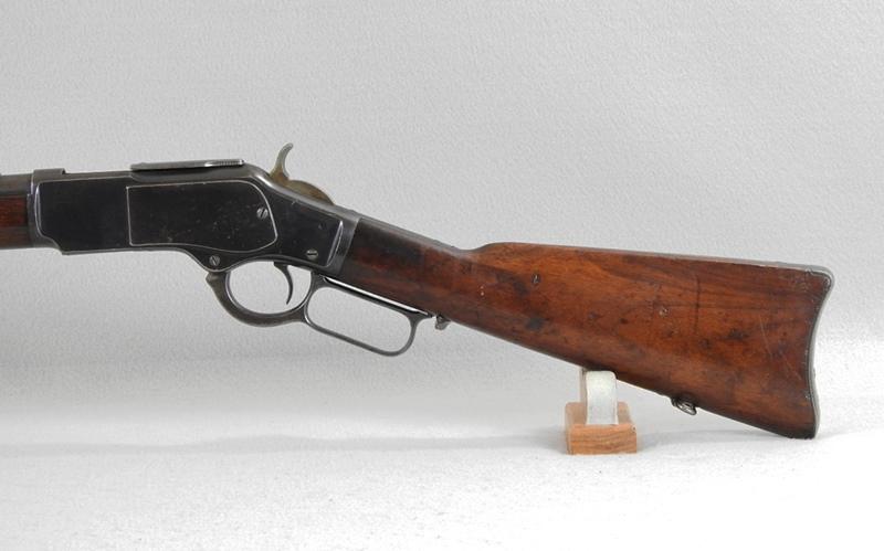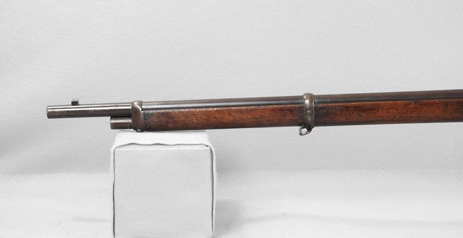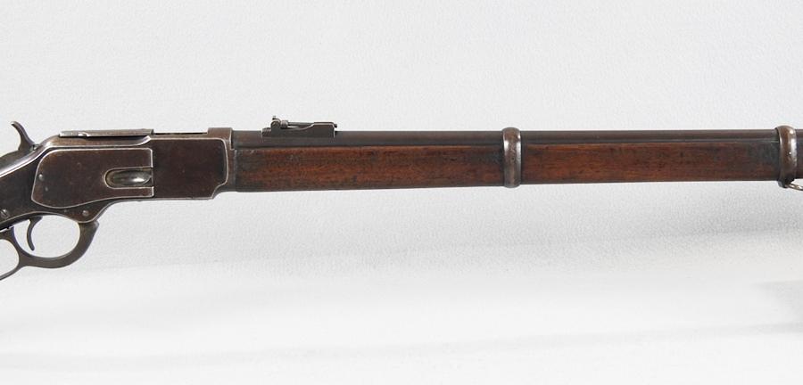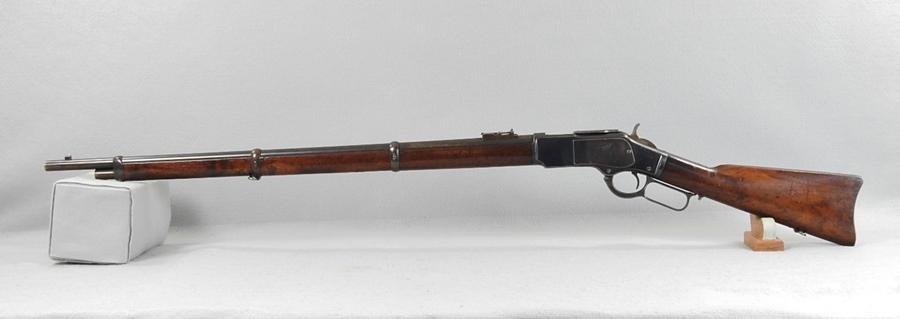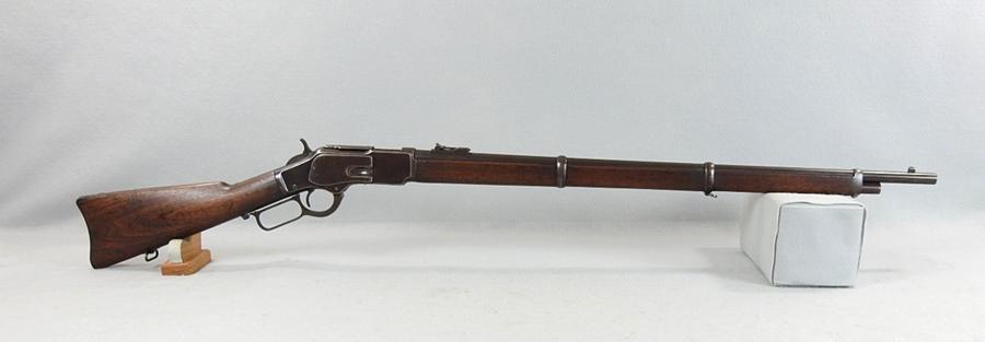 This is a very nice 1873 Musket and the serial number is 475073 and was made in 1894. The receiver retains over 75% blue and the barrel has about 70% blue. The mechanical function is very good crisp and tight and the bore very good bright and shiny with only small traces of corrosion. The 73 Muskets were very accurate with the 30” barrel. The ladder rear sight went up to 800 yards.